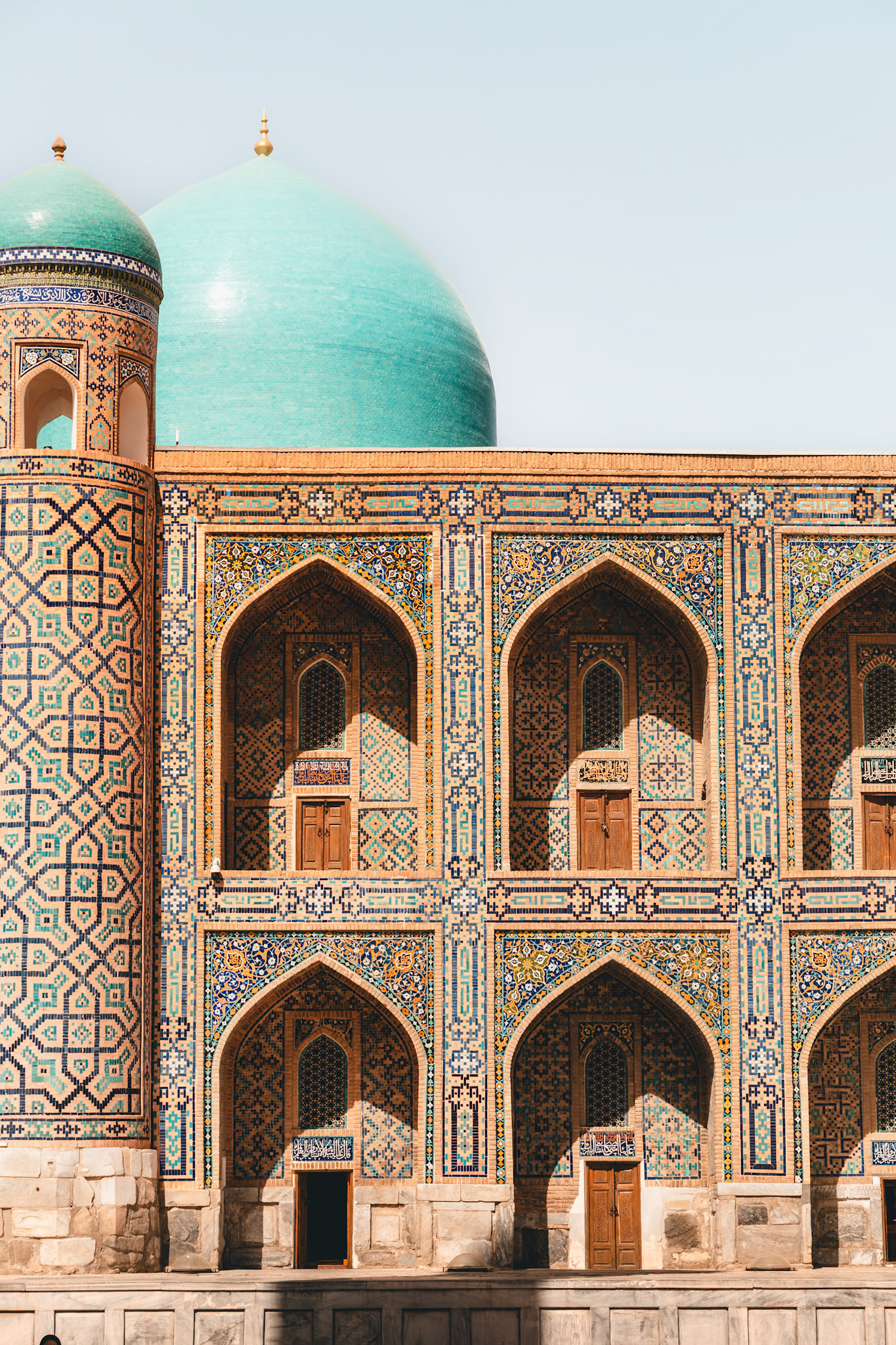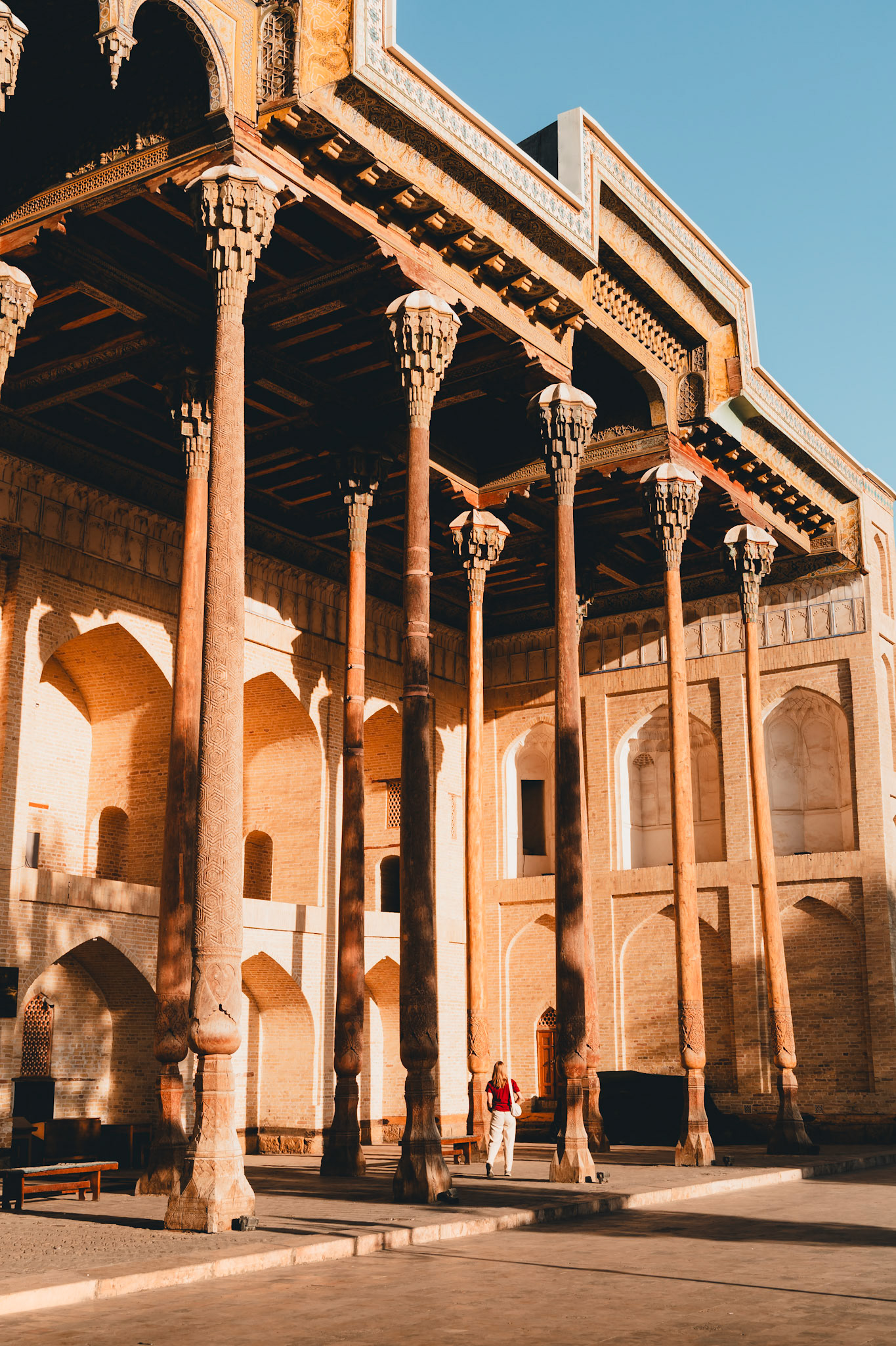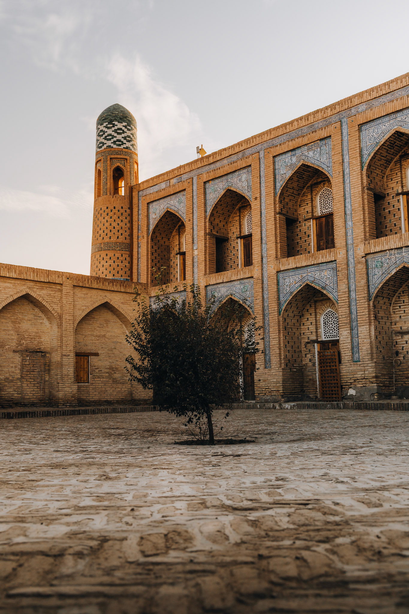 We slapen bij een familie in het oude centrum. Het ontbijt bestaat uit vers fruit, honing, thee en brood dat nog warm is van de oven. Buchara is een stad van zonsopkomsten. In de vroege uren, wanneer de stenen nog koel zijn en de zon opkomt, dwaal je door steegjes die je naar verborgen binnenplaatsen leiden.