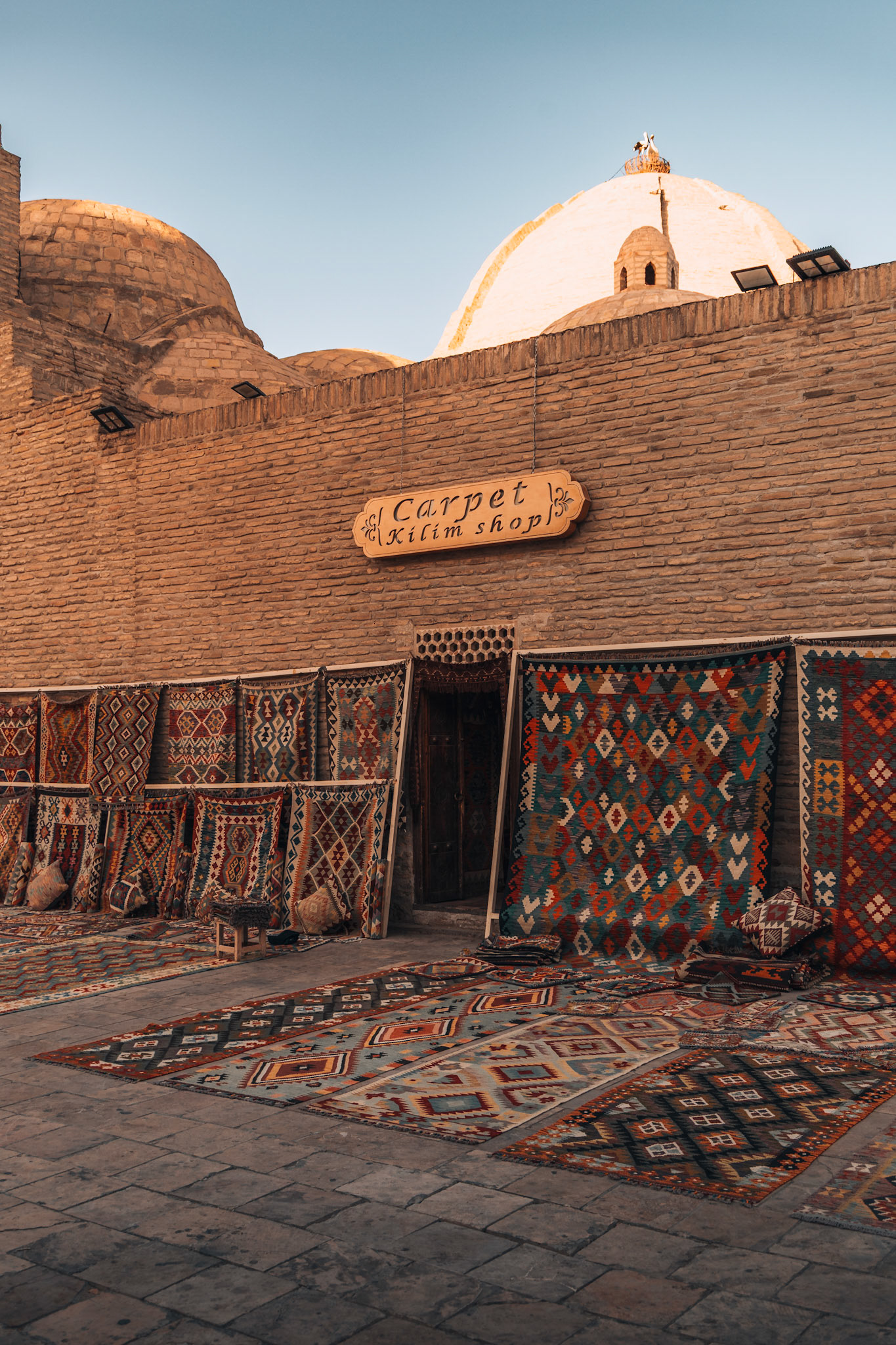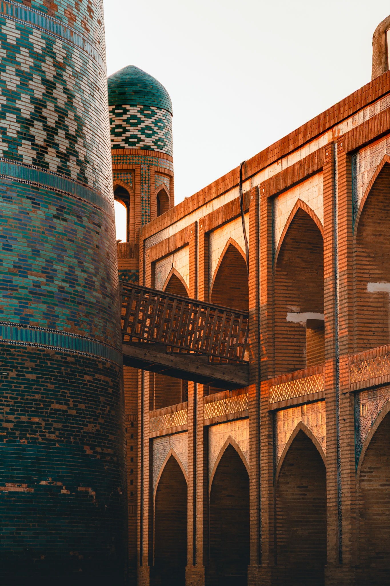 Khiva begroet ons met stilte. Binnen haar zandkleurige muren lijkt het alsof de tijd een andere richting heeft gekozen. De Itchan Kala, het oude centrum, is als een openluchtmuseum. Blauwe koepels, houten deuren vol houtsnijwerk, smalle straatjes vol zon en schaduw.